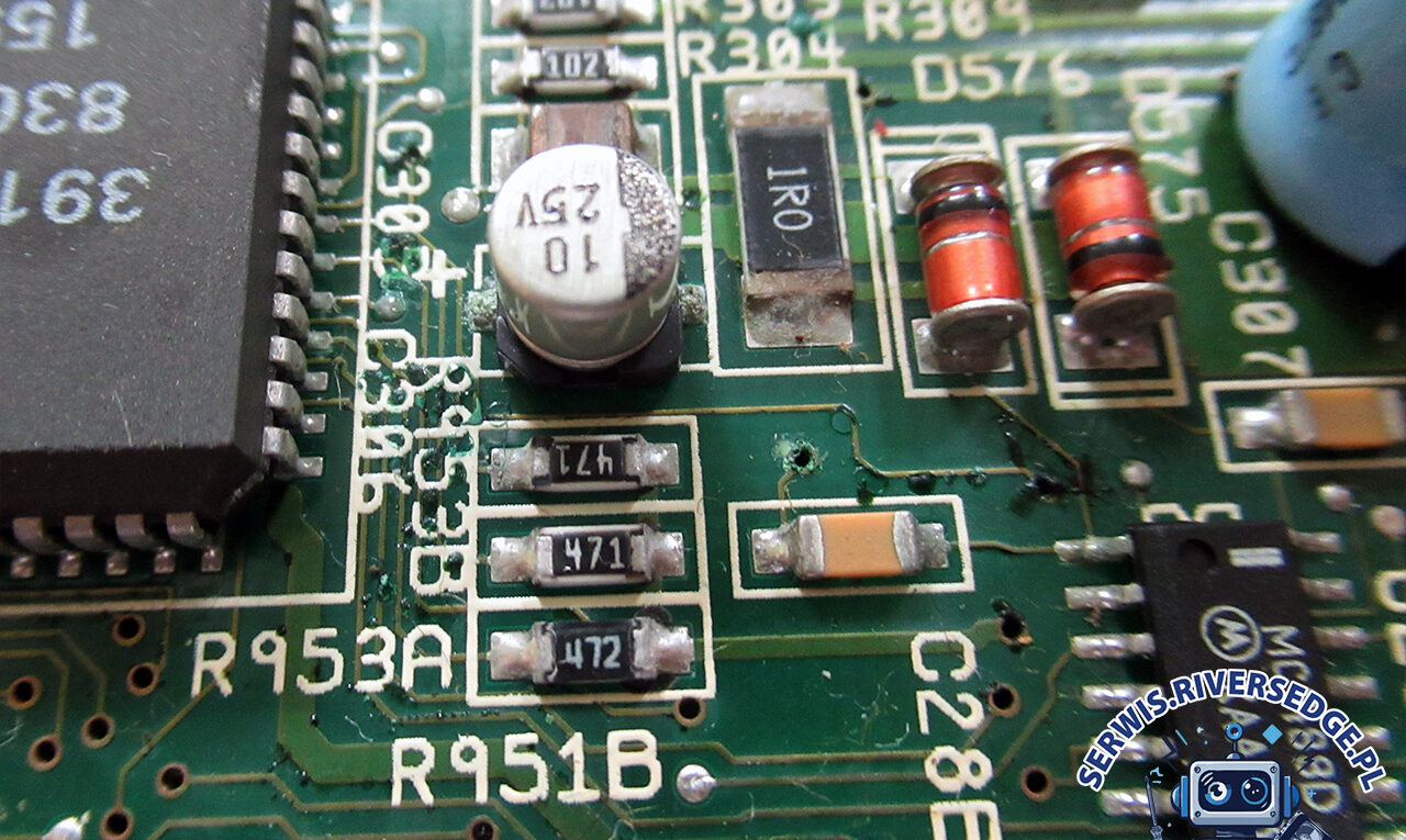 Podczas wizualnej inspekcji płyty głównej (rev. 1.5) stwierdziłem widoczne wycieki z kilku kondensatorów. Po ich wylutowaniu zneutralizowałem elektrolit oraz dokładnie oczyściłem pady wraz z ich otoczeniem. Kolejnym krokiem było sprawdzenie przewodności ścieżek miernikiem – testy nie wykazały żadnych uszkodzeń. Po wlutowaniu nowych kondensatorów Amiga 600 uruchomiła się prawidłowo, wyświetlając ekran powitalny, a następnie pomyślnie przeszła testy diagnostyczne.