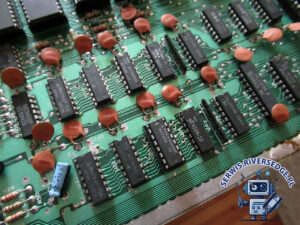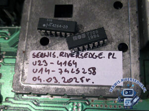 W pierwszej kolejności przeprowadziłem test diagnostyczny, który wykazał uszkodzenie kości pamięci 4164 (U23). Po wstawieniu podstawki i zamontowaniu sprawnego układu, komputer zgłosił się z niebieskim ekranem startowym, ale z powielonym dwukrotnie napisem „COMMODORE 64 BA”. Objaw ten jest stosunkowo często wywoływany przez uszkodzenie układu U14 74LS258 (zamiennik 7709). I rzeczywiście – po wstawieniu sprawnego układu komputer wyświetlił prawidłowy ekran startowy. Dalsze testy nie wykazały innych usterek.
