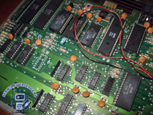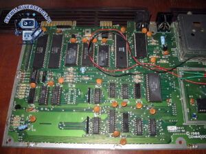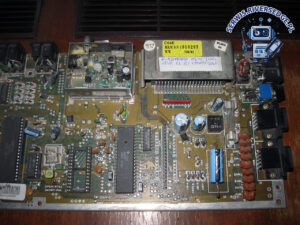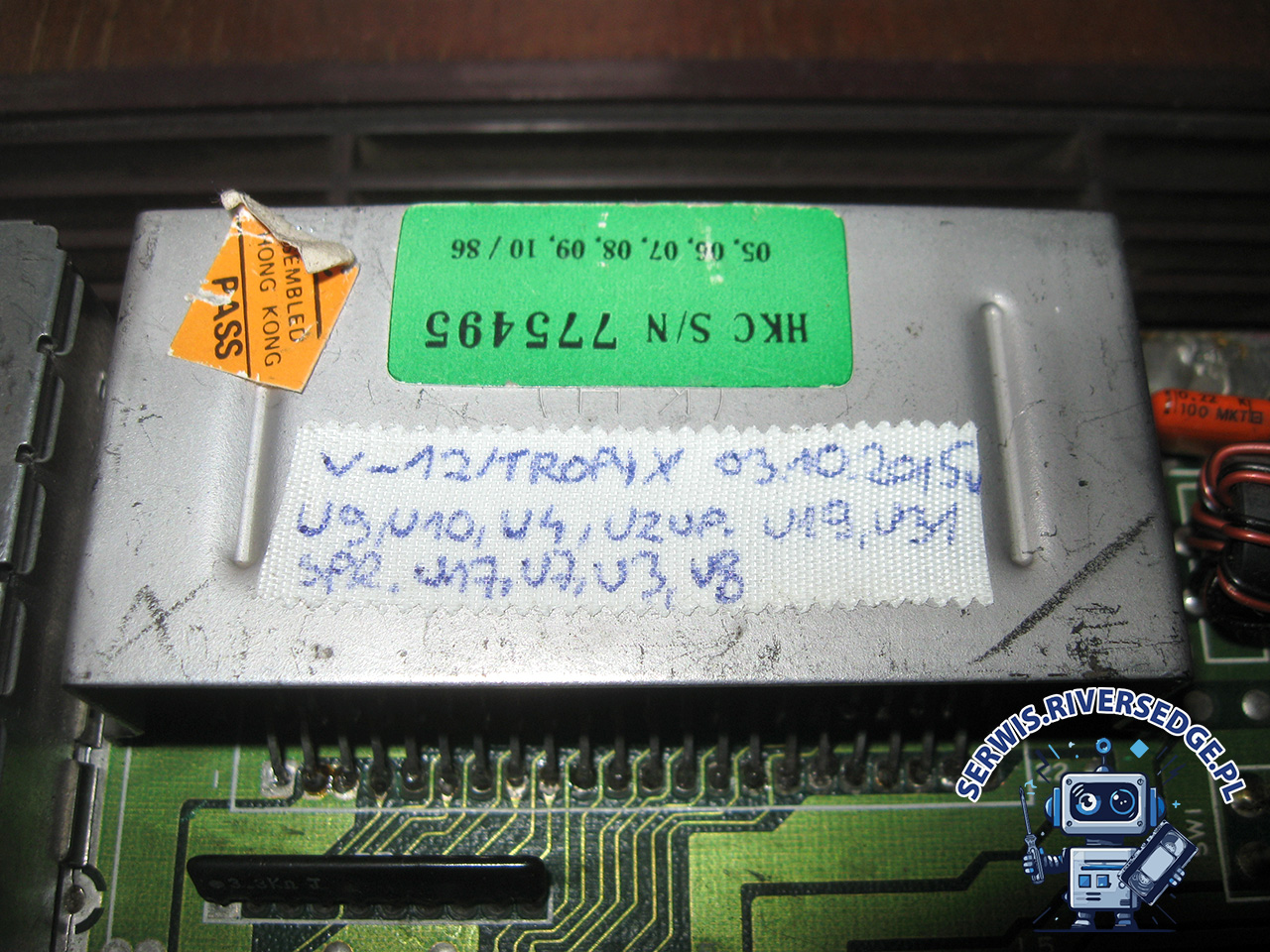 Druga płyta główna (nowszego typu) okazała się o wiele przyjemniejsza w naprawie. Wlutowałem brakujące rezystory i kondensatory, jak i gniazda joysticków. Po tej operacji płyta zgłosiła się z prawidłowym ekranem startowym, a dalsze testy nie wykazały jakichkolwiek usterek.