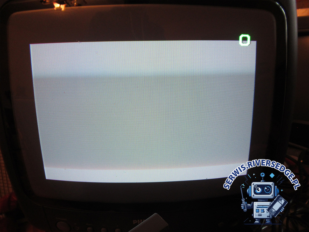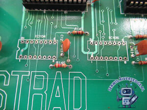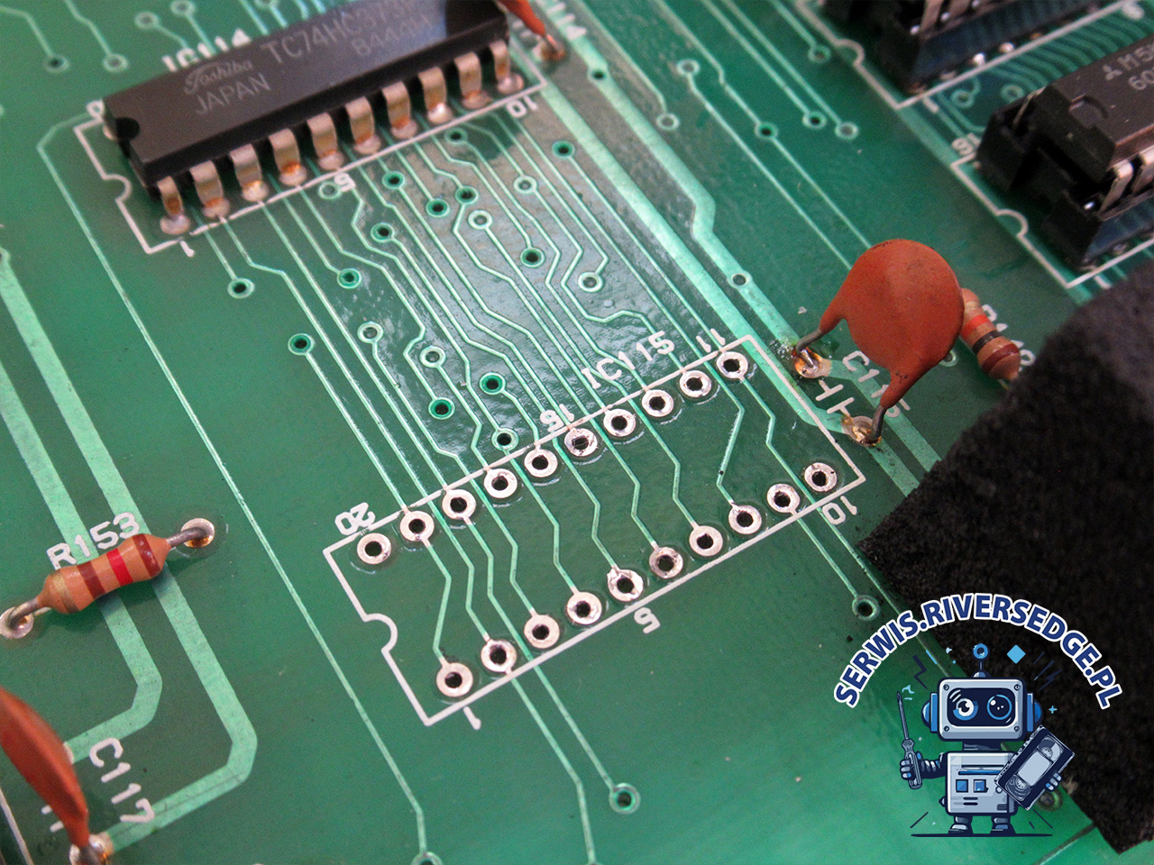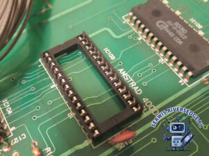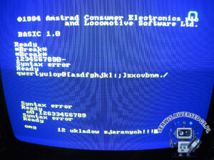 Następnie zweryfikowałem poprawność działania kontrolera video HD46505SP, Gate Array 40010 oraz procesora, by po chwili wykryć uszkodzenie ROM-u (IC103) o oznaczeniu 40009. Na szczęście można go samodzielnie odtworzyć przy wykorzystaniu układu EPROM o pojemności 32 KB. Komputer jednak w dalszym ciągu się nie uruchamiał. Przystąpiłem zatem do weryfikacji poprawności działania układów TTL, znając ich wrażliwość na zawyżone napięcie zasilania. Po wymianie układów IC114 (74373) i IC115 (74244), CPC464 zaprezentował pierwsze oznaki życia pod postacią ekranu z białymi, niebieskimi i zielonymi krzakami. Po wymianie układu IC106 (742373) na ekranie ujrzałem szaro-cyjanową szachownicę. Następnie zdiagnozowałem uszkodzenia kolejnych elementów o oznaczeniach IC103, IC113 i IC114. Po wstawieniu sprawnych układów komputer wreszcie zaprezentował prawidłowy ekran startowy. Dalsze testy nie wykazały innych uszkodzeń. CPC464 bez problemu wczytał i uruchomił grę z kasety.