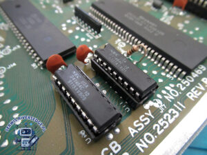Problematyczny okazał się jednak dołączony do komputera oryginalny zasilacz. Pomimo wskazywania prawidłowej wartości napięcia wyjściowego, jego filtracja była niesprawna, co powodowało problemy z uruchomieniem Commodorka (czarny ekran + przygasająca dioda POWER LED). Po konsultacji z właścicielem wykonałem naprawę zasilacza, który najprawdopodobniej był przyczyną uszkodzenia pamięci RAM. Czyszczenie komputera sprężonym powietrzem nie miało związku z powstaniem usterki.
