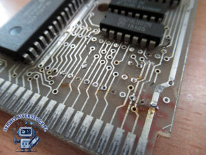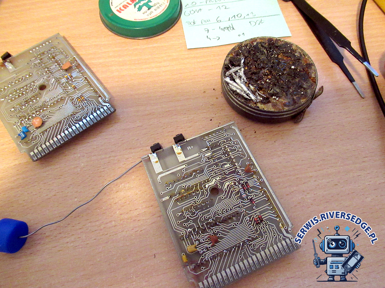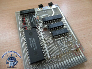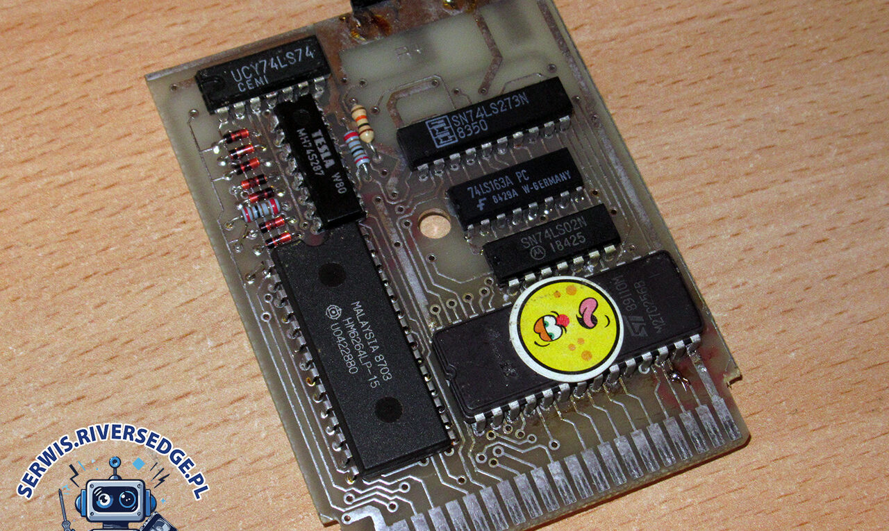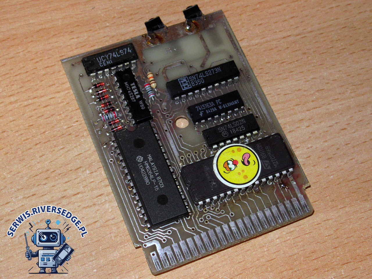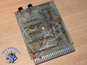 Słynny kartridż Action Replay v7.3 dedykowany Commodore 64. Przekazany na serwis w celu przywrócenia działania po wylutowaniu układu EPROM zakończonego uszkodzeniem ścieżek.