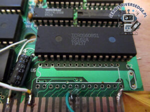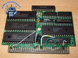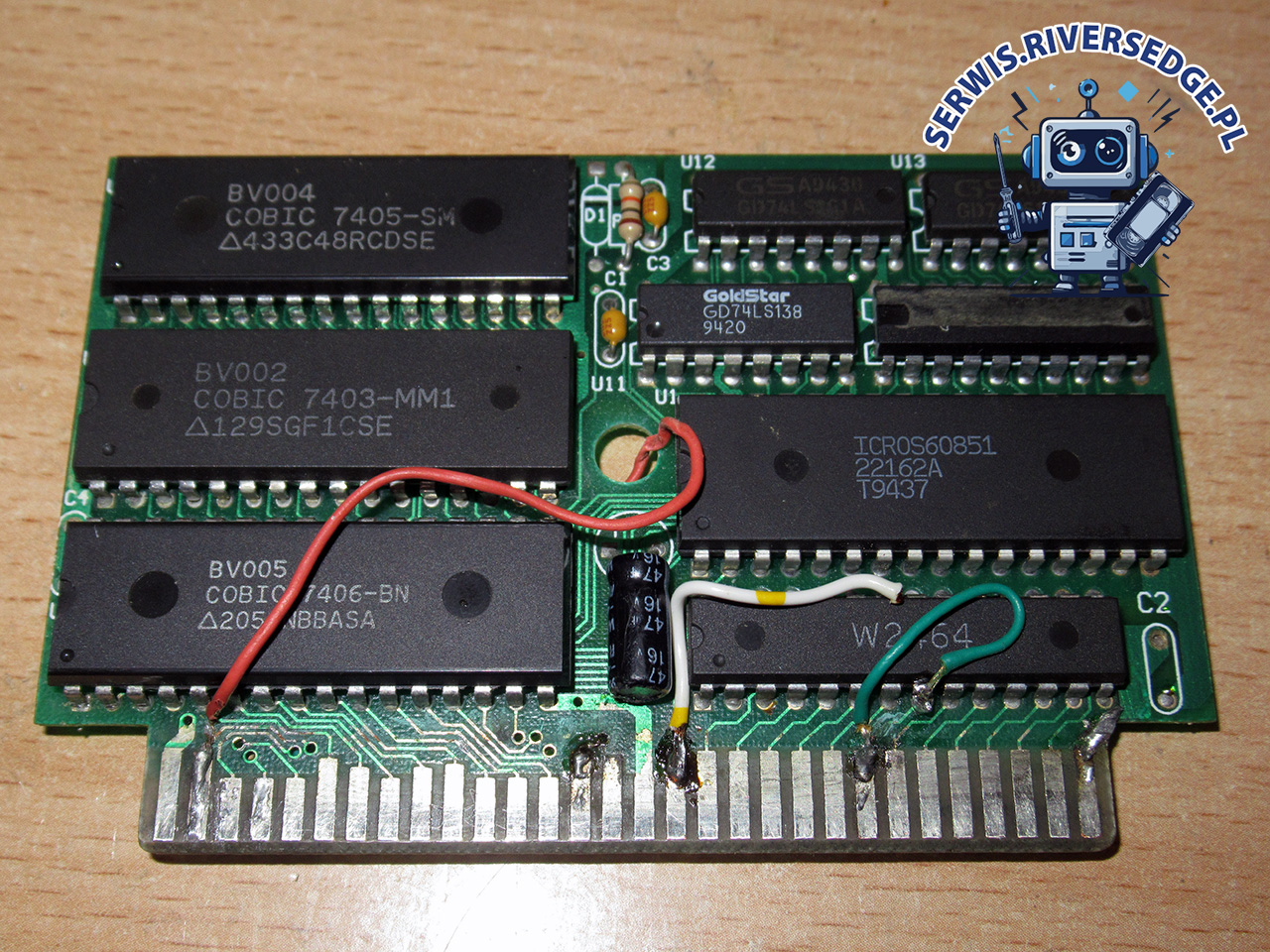 Pierwsze pomiary miernikiem wykazały dodatkowe przerwy na ścieżkach, jednakże ich rekonstrukcje za pośrednictwem przewodów nie pozwoliły usunąć usterki. Ponieważ gry się uruchamiały, a problem dotyczył wyświetlania przekłamań na grafice, diagnoza mogła być tylko jedna – uszkodzenie pamięci W2464 (64 KB SRAM).