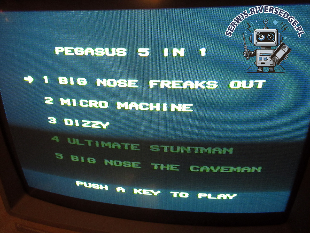 Ze względu na trudności w zdobyciu identycznego układu, podjąłem decyzję o zamówieniu i zainstalowaniu używanej pamięci o niemalże identycznych parametrach: W2465AK-15. Decyzja okazała się trafiona. Po wymianie pamięci Pegasus zaczął wyświetlać prawidłową grafikę na poszczególnych grach ze Złotej Piątki.