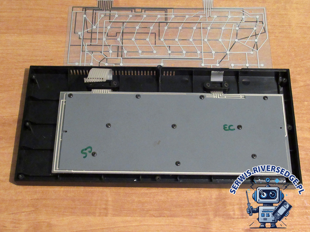 Następnym etapem prac była wymiana folii w klawiaturze. W komputerach ZX Spectrum+ oryginalne folie z czasem ulegały przerwaniu ze względu na ciepło emitowane przez 7805 i kumulowane na radiatorze. Operacja wymiany folii przebiegła pomyślnie i komputer po raz pierwszy mógł wyświetlić na ekranie coś więcej, aniżeli jedynie ekran startowy.