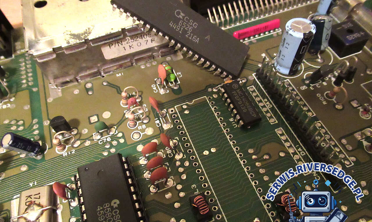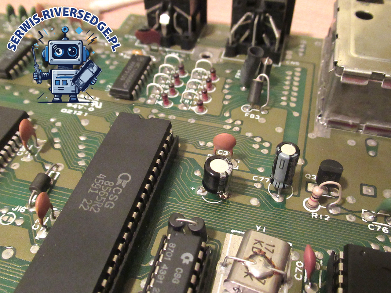 Dodatkowo na zlecenie klienta dokonałem wymiany kondensatorów oraz instalacji podstawki pod Kernal.